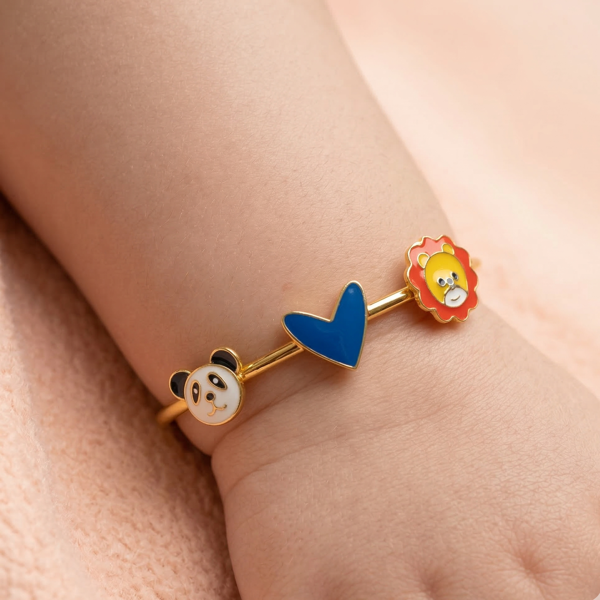 The panda, heart, and lion design on this kada make my baby so happy. It's a great piece for any little one.