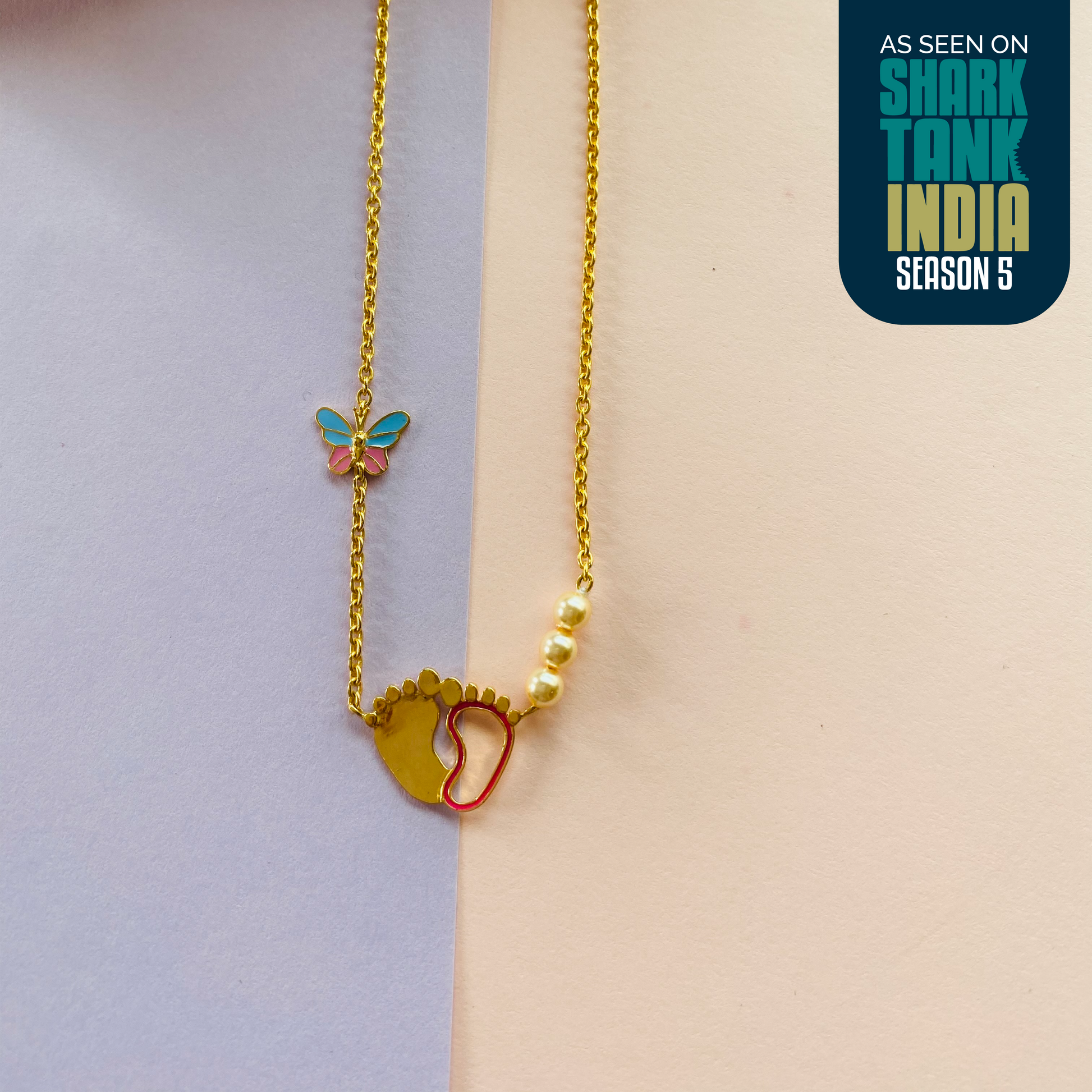Butterfly & Feet Silver Pendant With Chain