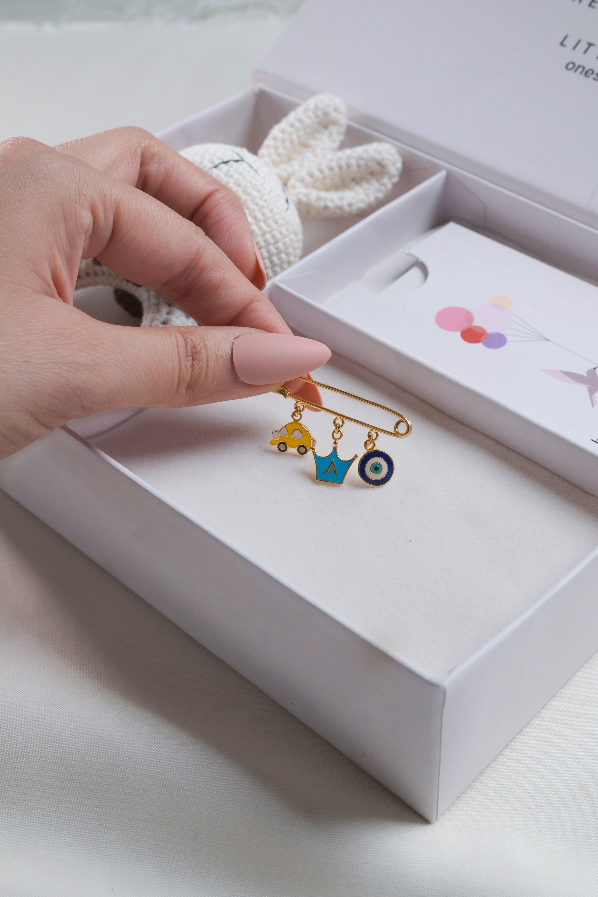 Car Crown Evil Eye Silver Lapel Pin