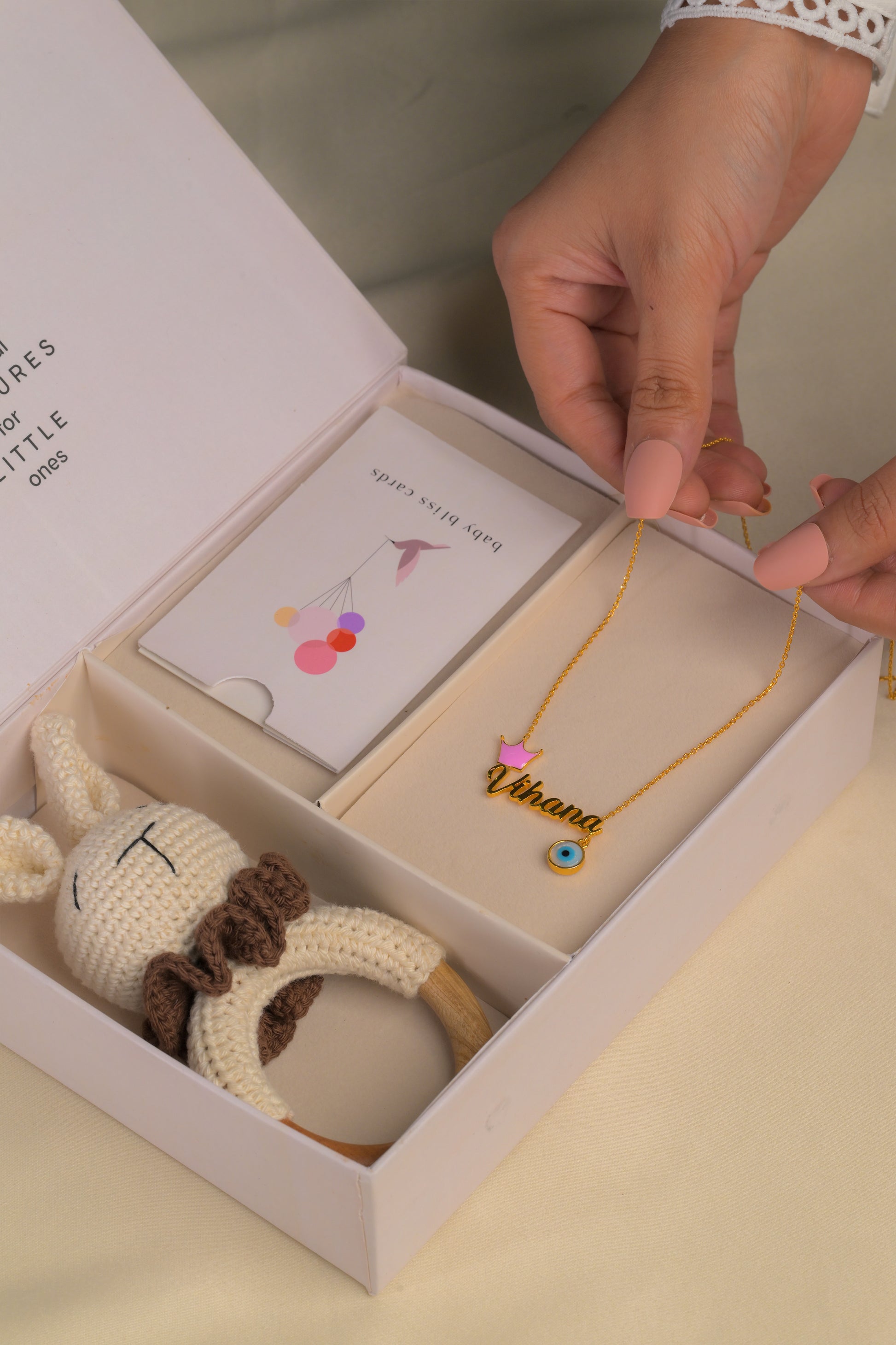 Personalized Name Crown Evil Eye Gold Pendant With Chain